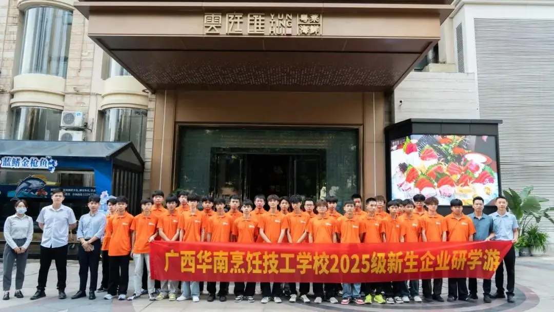 为深化校企协同育人模式,帮助 2025 级新生建立对餐饮行业的直观认知,广西华南烹饪技工学校于 2025 年7月30日组织新生赴云庭汇及裕达国际酒店开展实践学习活动。 01 云庭汇研学 上午,师生团队抵达云庭汇,作为广西